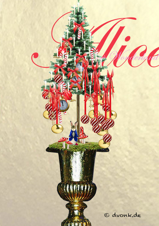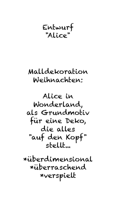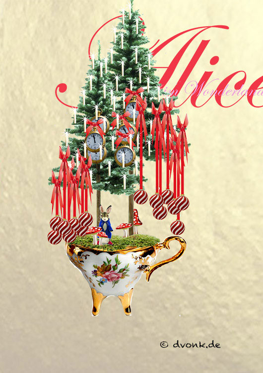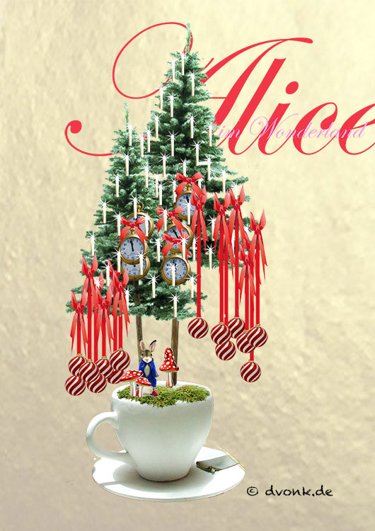 Alice in Wonderland, als Grundmotiv für eine Deko, die alles "auf den Kopf" stellt....