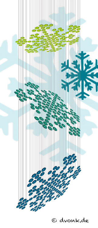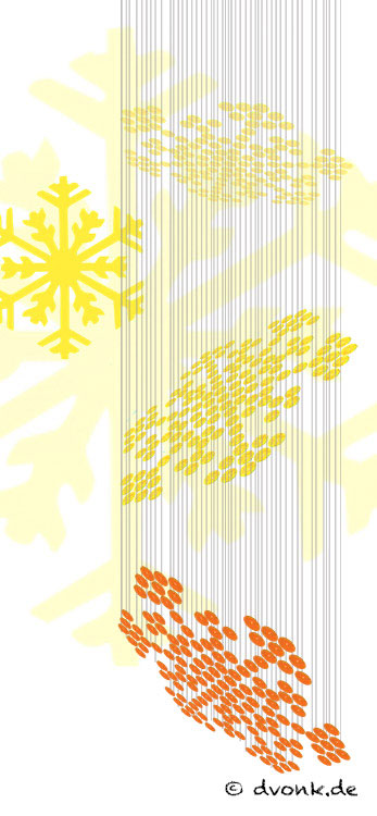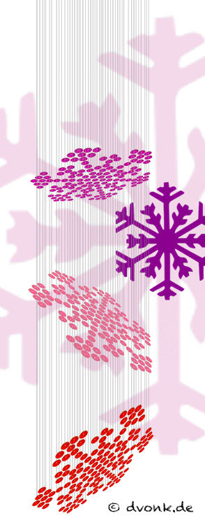 "fallende" Schneekristalle mit entsprechenden Farben.